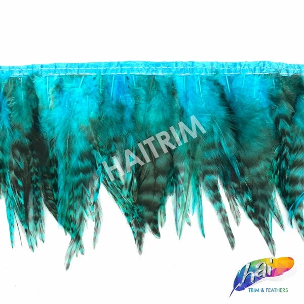 Each feather strip is strung on a ribbon sold by half yard. These feathers are commonly used in a variety of performance wear such as carnival costumes, dance, Broadway, parties, and also in hat making.