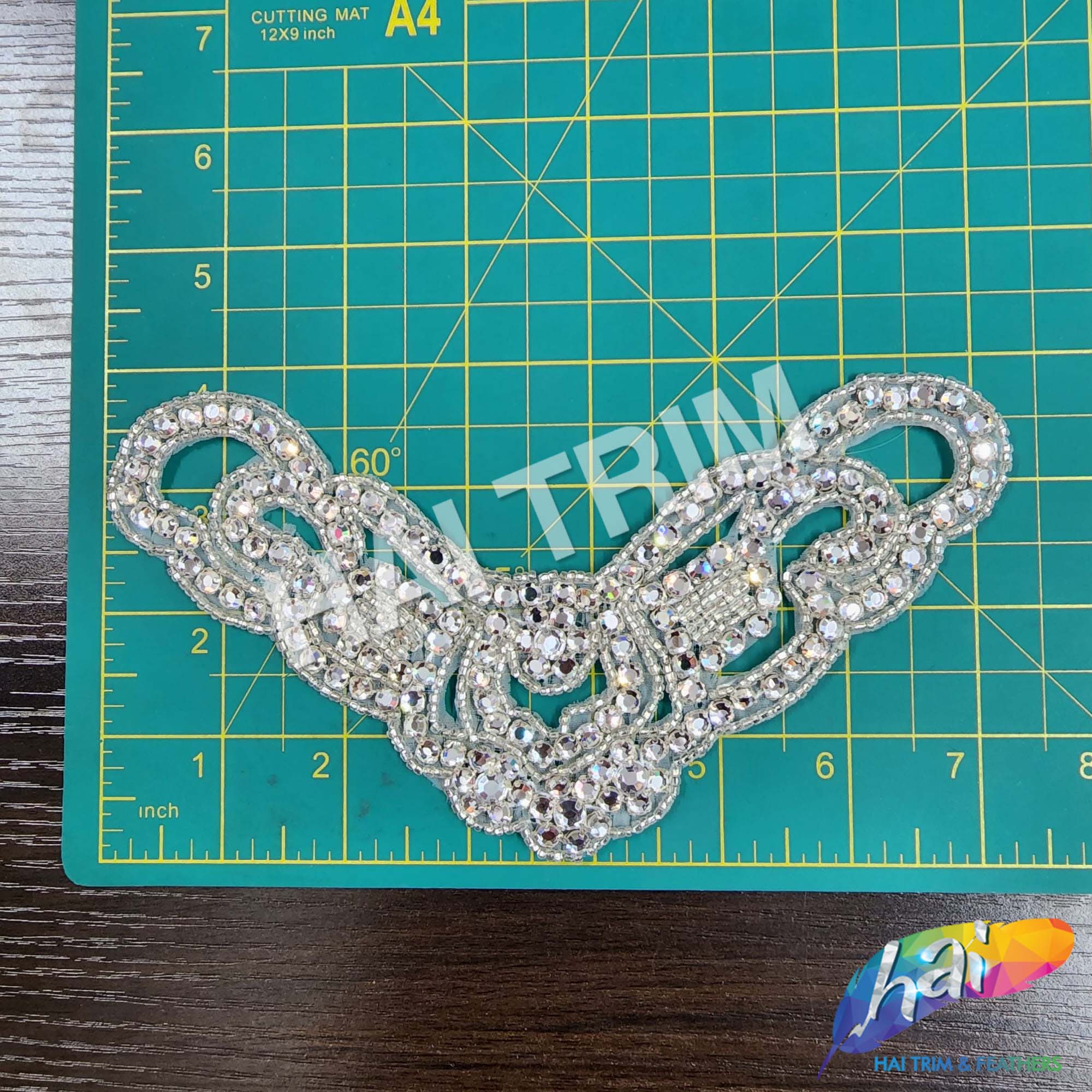 SALE! Beaded Rhinestone Applique, Wedding Formal Prom Crystal Patch, RA-064